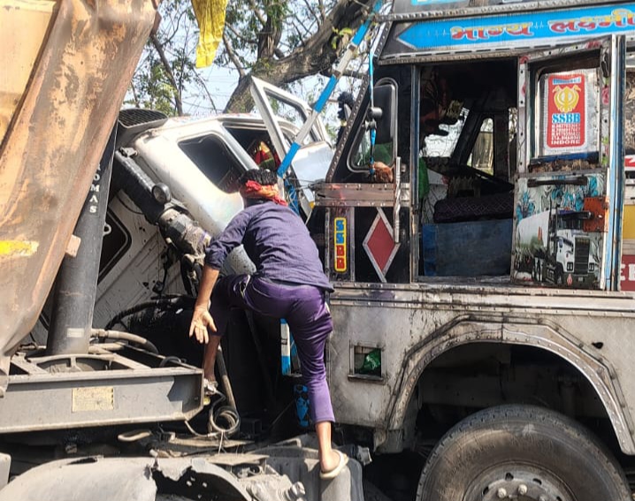सड़क हादसे में, बाडी गाड़ी क्षतिग्रस्त