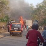 View Allहाथीनाला में भीषण टक्कर के बाद ट्रकों में लगी आग, दो की जिंदा जलकर मौत
