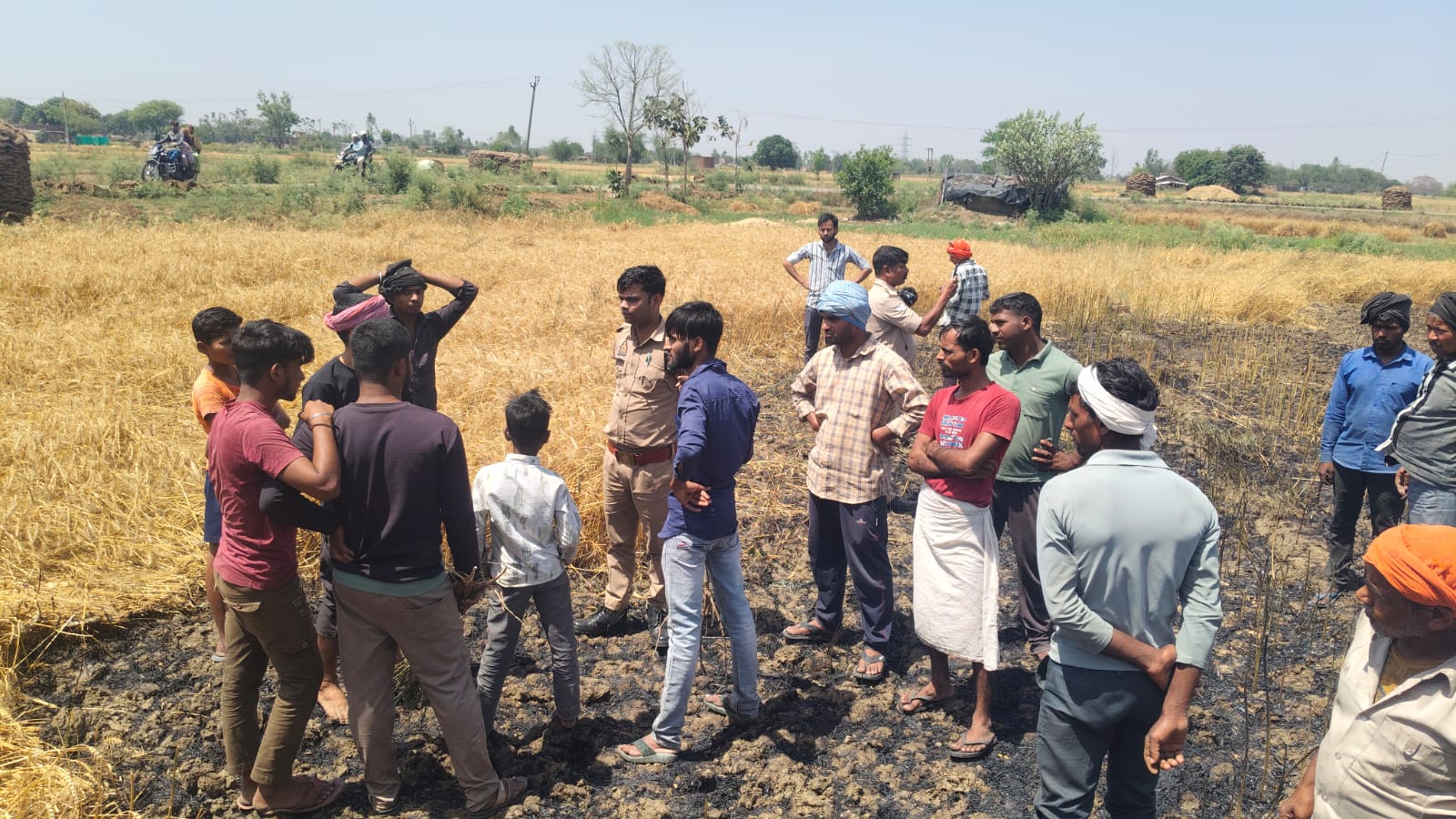 करमा में आग के कहर से 12 बीघा गेहूं जलकर राख, बिजली विभाग पर किसानों का आरोप