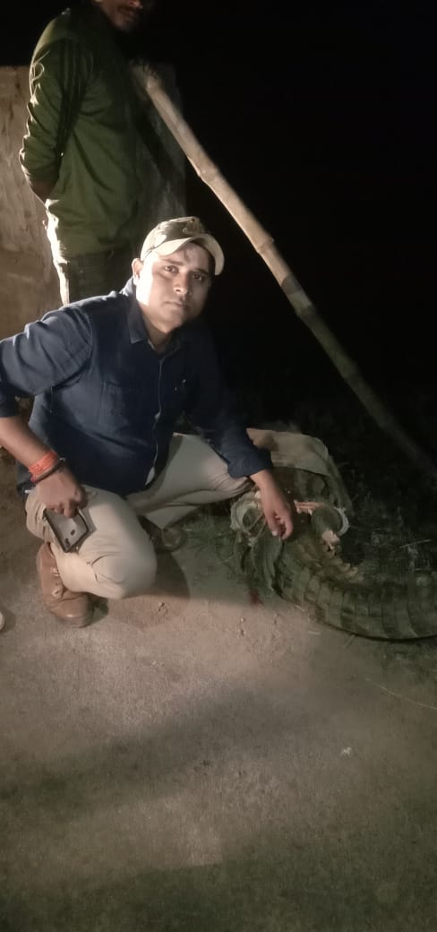 प्राप्त जानकारी के अनुसार घोरावल कोतवाली क्षेत्र के शिवद्वार वीट अन्तर्गत सिगरा बस्ती में सोमवार को अल सुबह सुदन मौर्या के घर के समीप खेत में ग्रामीणो द्वारा विशालकाय मगरमच्छ देखा गया। ग्रामीणों ने इसकी सूचना वन क्षेत्राधिकारी सुरजू प्रसाद को मोबाइल फोन के द्वारा दी। सूचना पर वन क्षेत्राधिकारी ने वन दरोगा राजन मिश्रा के नेतृत्व में वन विभाग की टीम मौके पर भेजा, जहां वन विभाग की टीम ने ग्रामीणों की सहयोग से काफी मशक्कत कर रेस्क्यू कर सात फीट विशालकाय मगरमच्छ पकड़ कर सोमवार को सुबह करीब 11 बजे सुरक्षित मुक्खा जलाशय में छोड़ दिया गया।