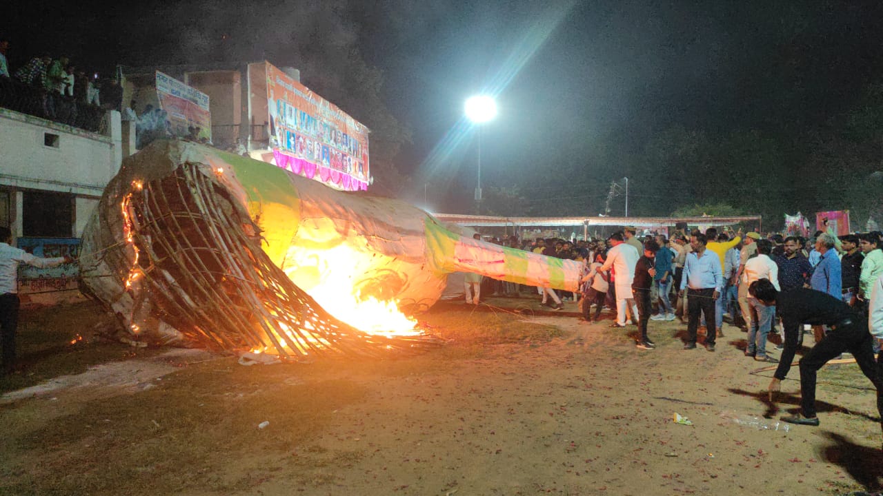 दुद्धी/सोनभद्र(रवि सिंह) -दुद्धी में हर्षोउल्लास के साथ दशहरे का त्यौहार मनाया गया |मंगलवार की शाम श्री रामलीला मैदान पर दशहरे का विशाल ऐतिहासिक मेले का आयोजन किया गया जहाँ हजारों दर्शकों के उपस्थिति में श्री राम व रावण का युद्ध हुआ इसके साक्षी क़स्बे में स्थापित माँ आदिशक्ति दुर्गा की प्रतिमाएं बनी इसके बाद राम के द्वारा रावण के नाभि में बाण लगते ही रावण मूर्छित हो होकर गिर पड़ा और दर्द से कराहने लगा | राम ने कहा कि लक्ष्मण रावण इस ब्रह्मांड का सबसे ज्ञानी व्यक्ति है इसके मृत्यु से पूर्व आदर पूर्वक कुछ बातें ग्रहण करों| बड़े भाई के आज्ञानुसार लक्ष्मण रावण के समीप जाकर कहा कि हे जगत विद्वान रावण हमें कुछ ज्ञान की बातें बताएं ,जिस पर मृत्यु शैय्या पर पड़े रावण ने कहा कि लक्ष्मण मैं जीवन की तीन महत्वपूर्ण बातें बताता हूँ ,किसी भी शुभ कार्य को करने में तनिक भी देर मत करना और अशुभ कार्य को जितना टाल सकते हो टालते रहना , दूसरा अपने दुश्मन को कभी भी कमजोर नहीं समझना चाहिए ,तीसरा किसी को भी अपनी राज की बात नहीं बताना चाहिए|जीवन में उपयोगी तीनों ज्ञान देने के बात रावण ने प्राण त्याग दिए ,इसके बाद गोधूलि बेला में 51 फ़ीट के भारी भरकम व विशाल पुतले में आग लगा कर दहन किया गया इसके उपरांत घंटो चली अतिशबाजी का दर्शकों ने लुफ्त उठाया इसी के साथ साथ भगवान राम माँ सीता, लक्ष्मण व हनुमान ,सुग्रीव आदि मंच पर विराजमान हुए जहाँ भक्तगणों ने आरती उतारी और प्रभु के आशीर्वाद ग्रहण किये | रामलीला मैदान में लोगों ने एक दूसरे से गले मिलकर दशहरे की बधाई दी और आपसी भाईचारे का संदेश दिया| उधर दर्जनों गांव से आये ग्रामीणों व नगरवासियों ने मेले में जमकर खरीदारी की और मेले का लुफ्त उठाकर अपने घरों को वापस हुए बड़े बुजुर्गों का आशीर्वाद लेकर घर में पकवानों का लुफ्त उठाया और एक दूसरे के घर जाकर दशहरे की बधाइयां दी|मेले का आयोजन रामलीला कमेटी दुद्धी के द्वारा किया गया | इस मौके पर कार्यक्रम के विशिष्ट अतिथि भाजपा जिलाध्यक्ष नंदलाल गुप्ता नगर पंचायत अध्यक्ष कमलेश मोहन राजन चौधरी पूर्व विधायक हरीराम चेरो राजकुमार अग्रहरी पूर्व अध्यक्ष आदि मंचासिन रहे।आयोजक समिति के अध्यक्ष जीतेन्द्र श्रीवास्तव ,महामंत्री कमल कुमार कानू संदीप गुप्ता आदि के कार्यक्रम की शोभा बढ़ाने में महत्वपूर्ण भूमिका निभाई।