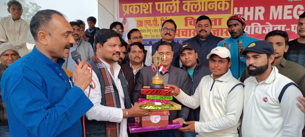 दुद्धी, सोनभद्र। स्थानीय टाउन क्लब मैदान पर आज दुद्धी बी तथा प्रकाश पाली राबर्ट्सगंज के बीच मैच खेला गया। टॉस किया राबर्ट्सगंज के कप्तान ने जीता और पहले बल्लेबाजी करने का फैसला किया। पहले बल्लेबाज़ी करते प्रकाश पाली राबर्ट्सगंज की टीम ने निर्धारित 20 ओवर में 8 विकेट खोकर 172 रन बनाये। जिसमे बीरबल ने 50 रन बनाये, सचिन ने 22 रन बनाये,प्रीतराज ने 17 रन तथा नफास्त खान ने 15 रनों की पारी खेली।गेंदबाज़ी करते हुए दुद्धी बी टीम के खिलाड़ी रेहान ने 3 विकेट तथा नागेंद्र ने 2 विकेट जबकि निशांत और आयाज ने 1-1 विकेट हासिल किया।