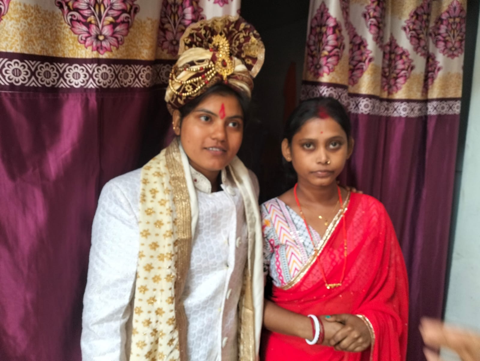 देवरिया। आर्केस्ट्रा में बतौर नर्तकी का काम करने वाली दो युवतियों ने मंदिर में शादी रचा ली यह दोनों युवतियां पश्चिम बंगाल की रहने वाली है दोनों ने अपनी शादी का पहले बाकायदा नोटरी शपथ पत्र बनवाया उसके बाद मंदिर में शादी की ऐसा बताया जाता है कि यह दोनों युवतियां दो वर्षों से एक ही साथ पति-पत्नी की तरह रहती थी आपको बता दे कि भाटपार रानी थाना क्षेत्र के चनूकी गांव में एक युवक आर्केस्ट्रा चलता है इस आर्केस्ट्रा में काम करने वाली दो नर्तकिया आपस में इतना नजदीक हो गई की दोनों आपस में अपना दिल दे बैठी दोनों युवतियां पश्चिम बंगाल के अक्षय नगर कॉलोनी की रहने वाली बतायी जा रहीं है यह दोनों आपस में पति-पत्नी की तरह रहती थी इन दोनों ने मझौली राज में प्रसिद्ध भांगड़ा भवानी माता के मंदिर में अपनी शादी रचा ली जिसका वीडियो खूब वायरल हो रहा है दोनों की शादी पंडित ने मंदिर में मन्त्रोंचार के साथ बिधि विधान से कराया दोनों ने आपस में एक दूसरे को वरमालाएं भी डाली और एक युवती ने दूसरी युवती के मांग में सिंदूर भी भरी वही देखने को मिला कि एक युवती वर के ड्रेस यानी शेरवानी और सर पर टोपी तो वही दूसरी युवती ने शादी के जोड़े यानी साड़ी पहनी थी य़ह समलैंगिक शादी पूरा क्षेत्र में चर्चा का विषय बना हुआ है इस शादी को देखने के लिए मंदिर में लोगों की काफी भीड़ इकट्ठा हो गई।