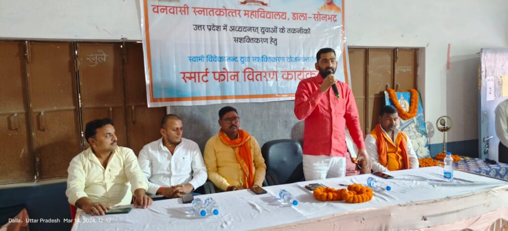 डाला /सोनभद्र (अजय दुबे,गिरीश तिवारी) – स्थानीय नगर क्षेत्र में स्थित वनवासी स्नातकोत्तर महाविद्यालय में बीए बीकॉम प्रथम द्वितीय तृतीय वर्ष के अध्ययनरत छात्र-छात्राओं में गुरुवार को कार्यकारी प्रबंधक अजीत कुमार दुबे की अध्यक्षता में 399 स्मार्टफोन का वितरण किया गया।