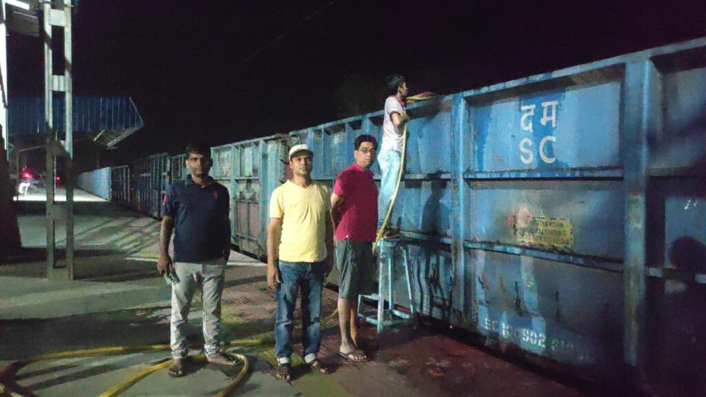 सोनभद्र। दुद्धी नगर स्टेशन से लगभग शाम 4:55 पर गुजर रही कोयल लदी मालगाड़ी के छठवें नंबर वैगन से धुआं उठा देख तत्काल रूप से सभी रेलकर्मी स्टेशन के प्लेटफार्म नंबर तीन पर पहुंच गए व प्राइवेट पानी टैंकर से आग को बुझाने के प्रयास मे लग गए आपको बताते चले कि जीबीजीजी (म.प्र ) (अप)स्टेशन के लिए मालगाड़ी कोयला लोड कर झारखंड से बुधवार को आ रही थी। कि रास्ते में आते वक्त इंजन से छठे वैगन में अचानक आग लग गई थी ।जो कई स्टेशनों से होकर गुजरते हुए ,दुद्धी स्टेशन पर लगभग शाम 4:55 बजे पहुंची ,रेल कर्मियों के द्वारा वैगन से धुआं उठता देख तुरंत स्टेशन मास्टर को इसकी सूचना दी गई और अन्य सहयोगीयो के साथ आग पर काबू पाने के लिए घंटो प्रयास किया गया और उक्त वैगन में लगे आग को लगभग 8:30 बजे कड़ी मशक्कत के बाद आग पर काबू पाया गया और कोयले में लगी आग को बुझाया गया। इस मौके पर शैलेश कुमार, ऐनक सिन्हा, ,निशांत प्रतीक( स्टेशन मास्टर )सुरेश साह,आर पटवारी ,राजीव कुमार यादव (प्वाइंट मैंन) पंकज सिंह आरपीएफ, सहित अन्य रेलकर्मी मौजूद रहे।