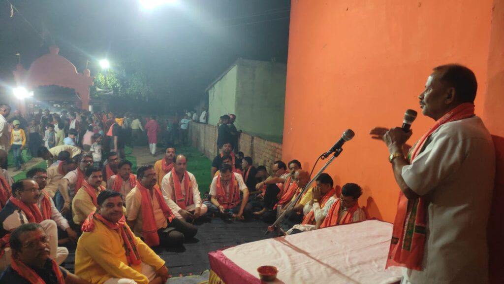 सोनभद्र। दुद्धी क़स्बे के वार्ड नंबर 10 डीहवार बाबा धाम व हनुमान जी के मंदिर प्रांगण में रामनवमी के समाप्ति उपरांत बजरंगी झंडे के विसर्जन भव्य भंडारे के साथ कर दिया गया , भंडारा बजरंग अखाड़ा समिति रामनगर के तत्वाधान में आयोजित की गई ,कार्यक्रम के शुरुआत में हनुमान जी की मूर्ति की विधिवत पूजा अर्चना करते हुए सभी देवी देवताओं को सुमिरन कर भंडारे हेतु बने प्रसाद का भोग लगाया गया इसके बाद जय बजरंग केंद्रीय अखाड़ा समिति के अध्यक्ष ,पूर्व अध्यक्ष ,संरक्षक, महामंत्री सहित जय बजरंग अखाड़ा समिति रामनगर के सभी कमेटी के कार्यकर्ताओं व मीडियाकर्मियों व वृद्ध जनों सम्मानित जनों को टिका लगाकर अंगवस्त्रम भेंट किया गया| सभी युवाओं को भी जय बजरंग अखाडा समिति के अध्यक्ष बबलू कश्यप व उनके सहयोगियों के द्वारा सम्मानित किया गया |कार्यक्रम को संबोधित करते हुए केंद्रीय अखाड़ा कमेटी के संरक्षक रामलोचन तिवारी ने कहां कि आज 550 वर्षों के बाद भगवान श्री राम लला की स्थापना उनके जन्म भूमि अयोध्या में हुई और हम सब यह पहला रामनवमी उनके स्थापना उपरांत बड़े ही भव्य रूप से दुद्धी में मनाए , जिसमें माता बहनों महिलाओं ने भी भव्य शोभा यात्रा निकला गया वहीं हमारे बजरंगी झंडा अखाड़ा के सभी लोगों ने भी इस रामनवमी में अपना भरपूर सहयोग रामनवमी के कार्यक्रम को सफल बनाने में दिया| उन्होंने सभी राम भक्तों एवं बजरंगी भक्तों से अपील किया कि हमारे सनातनी धर्म की मान सम्मान प्रतिष्ठा आप सभी हमेशा बनाए रखें और हमेशा दुद्धी क्षेत्र का नाम रामनवमी त्योहार को लेकर लोगों के मन में एक अलग ही आस्था से देखा जाए व सभी के मन मे श्रद्धा केंद्र बना रहे यही कामना मैं करता हूं । कार्यक्रम का संचालन सुनील जायसवाल ने किया वही कार्यक्रम के दौरान भाजपा प्रत्याशी श्रवण गौड का भी आगमन हुआ और उन्होंने भी अपने कार्यकर्ताओं के साथ हनुमान जी के मंदिर में माथा टेक भंडारे का प्रसाद ग्रहण किया, सम्मान समारोह के बाद सभी आए हुए भक्तों ने भंडारे का प्रसाद ग्रहण किया और कमेटी को इस सफल आयोजन के लिए धन्यवाद व्यापित किया। इस मौके पर गोपाल चंद्रवंशी गुरुजी, अध्यक्ष पंकज जायसवाल ,पूर्व अध्यक्ष कन्हैयालाल अग्रहरि ,नगर पंचायत अध्यक्ष कमलेश मोहन पूर्व अध्यक्ष कमल कानू, दीपक शाह महामंत्री सत्येंद्र चंद्र ,कृष्णा चंद्रवंशी , जिला मंत्री दिलीप पांडे ,जितेंद्र चंद्रवंशी , रवि सिंह , राम जी पांडे एडवोकेट ,राकेश श्रीवास्तव एडवोकेट ,कृष्णा मुरारी पांडे एडवोकेट, विजय चंद्रवंशी, राजेश्वर श्रीवास्तव ,विनोद यादव ,अनिल हलुवाई ,अमरनाथ जायसवाल ,सुरेंद्र गुप्ता ,हिमांशु चौरसिया ,पवन खरवार ,राजकुमार ,रोहित कश्यप ,राजू शर्मा ओमप्रकाश कश्यप, विकास चंद्रवंशी ,शिवकु