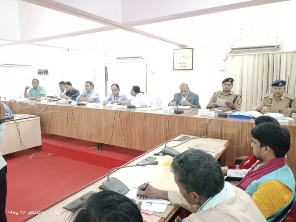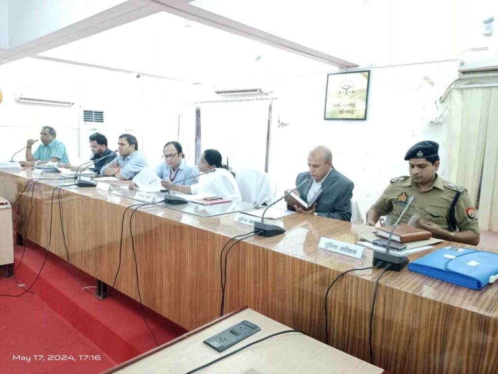 सोनभद्र। भारत निर्वाचन आयोग के निर्देशानुसार लोक सभा सामान्य निर्वाचन-2024 एवं 403-दुद्धी (अ० ज०जा०) विधानसभा उप निर्वाचन-2024 को निष्पक्ष एवं पारदर्शी तरीके से सम्पन्न कराने हेतु मा0 सामान्य प्रेक्षक श्रीमती जी0 जया लक्ष्मी की अध्यक्षता में, व्यय प्रेक्षक श्री असलम हसन (आई0आर0एस), पुलिस प्रेक्षक आर0बी0 दहले (आई0पी0एस0), जिला निर्वाचन अधिकारी चन्द्र विजय सिंह, पुलिस अधीक्षक डाॅ0 यशवीर सिंह, अपर जिलाधिकारी/उप जिला निर्वाचन अधिकारी सहदेव कुमार मिश्र, अपर पुलिस अधीक्षक त्रिभूअन नाथ त्रिपाठी की उपस्थिति में निर्वाचन लड़ने वाले प्रत्याशियों व राजनैतिक दलों के प्रतिनिधियों के साथ बैठक की गयी। बैठक के दौरान जिला निर्वाचन अधिकारी ने राजनैतिक दलों के प्रतिनिधियों को सम्बोधित करते हुए कहा कि मा0 भारत निर्वाचन आयोग के दिशा-निर्देशों के अनुरूप आदर्श आचार संहिता का अनुपालन समस्त पार्टी प्रतिनिधियों व प्रत्याशियों द्वारा किया जाये, आदर्श आचार संहित के उल्लंघन पाये जाने पर सम्बन्धित के विरूद्ध भारत निर्वाचन आयोग के दिशा-निर्देशों के अनुरूप आवश्यक कार्यवाही सुनिश्चित की जायेगी।