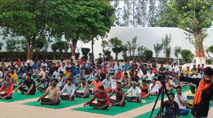 सोनभद्र। देश में अंतर्राष्ट्रीय योग दिवस का महापर्व आने वाला है इसे लेकर जगह-जगह तैयारी जिला प्रशासन, सामाजिक संगठन द्वारा शुरू कर दी गई है। इसके साथ ही सोनभद्र के जिला कारागार में भी योग को लेकर यहां के पुलिस कर्मियों व कैदियों के बीच काफी उत्साह देखा जा रहा है। जिला कारागार में तीन दिवसीय योग शिविर का आयोजन आज से शुरू किया गया है जिसका समापन 21 जून अंतर्राष्ट्रीय योग दिवस पर किया जाएगा। योग शिविर के पहले दिन घोरावल विधायक अनिल मौर्य भी जेल में पहुंचकर लोगों का उत्साह वर्धन किए और योग में शामिल रहें। जेल में कैदियों व पुलिसकर्मियों के साथ अन्य लोगों द्वारा योग का प्रशिक्षण प्राप्त किया गया। आपको बता दें कि देश में मोदी सरकार आने के बाद 21 जून को अंतर्राष्ट्रीय योग दिवस घोषित किया गया था। जिसके बाद लोगों का रुझान योग के तरफ निरंतर बढ़ता चला जा रहा है जिसका असर सोनभद्र के जिला जेल में बंद कैदियों पर भी देखने को मिल रहा है कैदियों द्वारा पर चढ़कर योग का प्रशिक्षण लिया जा रहा है।