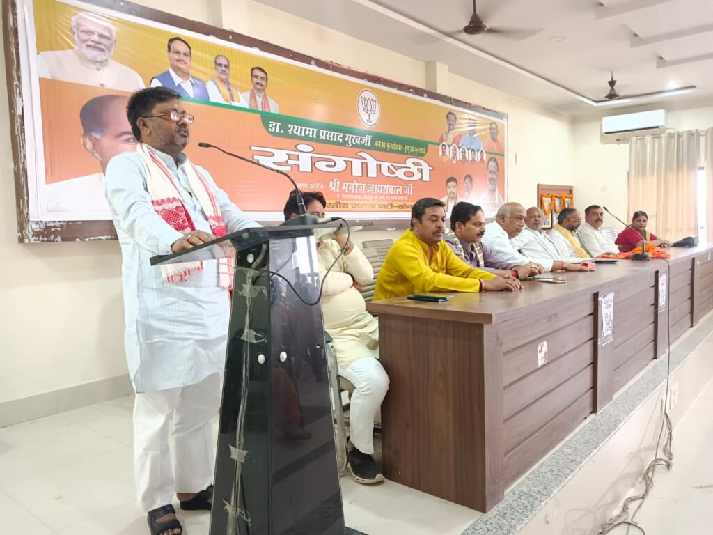 ऐसे माँ भारती के अमर सपूत को हम सभी नमन करते है और उनके दिखाये हुये मार्ग पर चलने का संकल्प लेते है। उनकी इच्छा थी कश्मीर भारत का अभिन्न अंग है, इसलिए वहां विशेष नियम संविधान और झण्डा नही होना चाहिए संपूर्ण भारत में एक नियम एक संविधान और एक झण्डा हो इसके लिए डॉ0 श्यामा प्रसाद मुखर्जी संघर्ष करते रहे। उनके इस सपने को साकार भारत के यशस्वी प्रधानमंत्री नरेन्द्र मोदी जी और गृहमंत्री अमित शाह ने कश्मीर से धारा 370 हटाकर किया। आज भारत अखण्ड होने के कगार पर है। इस मौके पर राज्यसभा सांसद रामशकल जी ने कहा कि जब 1925 मे आरएसएस कि स्थापना हुयी उसके बाद तत्कालीन संघ प्रमुख ने सोचा कि राजनीतिक क्षेत्र मे भी अपने लोगो को काम करने की आवश्यकता है तत्पश्चात् डॉ0 श्यामा प्रसाद मुखर्जी व अन्य चार सहयोगियों के साथ एक अलग राजनैतिक संगठन जनसंघ के नाम से स्थापित किया गया जो आज ऐसे मनीषियों के कारण ही एक बडा वट वृक्ष भारतीय जनता पार्टी के रुप मे बनकर काम कर रहा है। इस मौके पर सदर विधायक भूपेश चौबे ने कहा कि डॉ0 श्यामा प्रसाद मुखर्जी जी के पदचिन्हो पर चलते हुए भारतीय जनता पार्टी की केन्द्र सरकार व प्रदेश सरकार देश के हित मे लगातार काम कर रही है और आज जम्मू कश्मीर से आतंकवाद का लगभग सफाया हो गया है और लाल चौक पर भारत का तिरंगा लहरा रहा है। इस मौके पर भाजपा जिलाध्यक्ष आये हुए अतिथियों व कार्यकर्ताओं का आभार प्रकट व धन्यवाद ज्ञापित करते हुए कहा कि जनसंघ के संस्थापक डॉ0 श्यामा प्रसाद मुखर्जी ने अपने जीवन का पल पल राष्ट्र कि एकता और अखण्डता को अक्षुण रखने के लिए समर्पित किया उन्होने देश व राष्ट्र के नाम अपना सर्वाेच्च बलिदान दिया उनके दिखाये मार्ग पर चलकर मोदी सरकार ने जम्मू कश्मीर से धारा 370 और 35ए को हटाया और जम्मू कश्मीर को विकास के मुख्यधारा से जोड़ा। इस मौके पर पूर्व जिलाध्यक्ष धर्मवीर तिवारी, अजीत चौबे, सदर प्रमुख अजीत रावत, नगर पालिका चेयरमैन रुबी प्रसाद, जिला महामंत्री कृष्णमुरारी गुप्ता, रामसुन्दर निषाद, जिला उपाध्यक्ष उदयनाथ मौर्या, जिला मंत्री शंम्भू नारायण सिंह, दिलिप मौर्या, राघो सिंह, बलराम सोनी, महेन्द्र पाण्डेय, महेश्वर खरवार, यादवेन्द्र द्विवेदी, बृजेश श्रीवास्तव, गुडिया त्रिपाठी, रुबी गुप्ता, अमरेश चेरो, ओमप्रकाश यादव सहित आदि कार्यकर्ता मौजूद रहे।