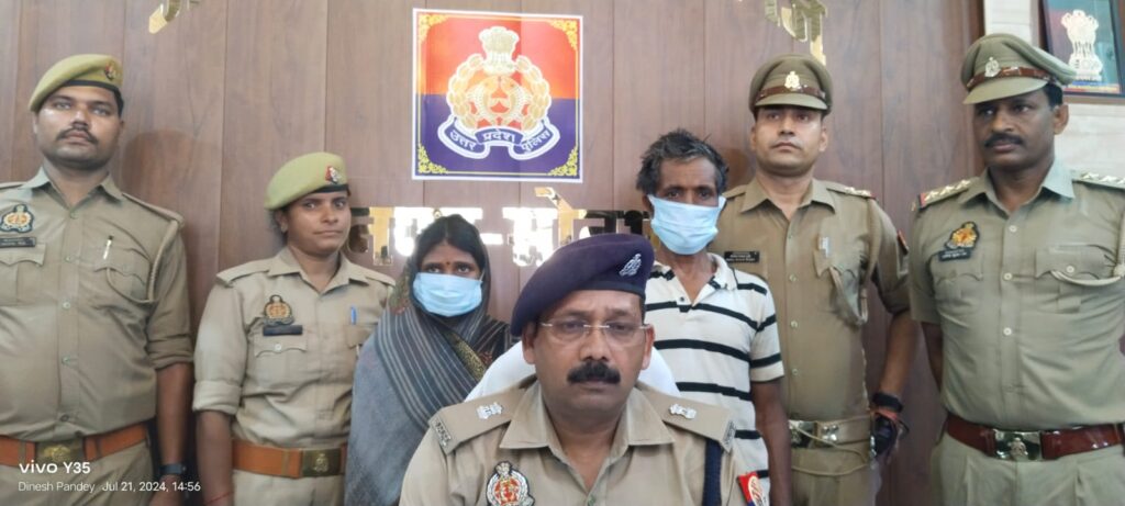 सोनभद्र। राबर्ट्सगंज पुलिस व एसओजी टीम को मिली बड़ी सफलता, सुनियोजित तरीके से व्यक्ति की हत्या करने वाले बहु व ससुर को गिरफ्तार कर आलाकत्ल बरामद किया गया है। मामले का खुलासा एएसपी कालू सिंह ने किया। पिछले दिनों 22 वर्षीय अरविंद चौहान का शव नहर में मिलने के बाद परिजनों ने विशेष समुदाय के लोगों पर हत्या कर शव नहर में फेके जाने का आरोप लगाते हुए जमकर हंगामा किया था साथ ही स्थानीय पुलिस चौकी प्रभारी समेत स्टॉप के लोगो पर समुदाय विशेष के लोगो के साथ मिलकर हत्यारोपीयों द्वारा गांजा बेचने का भी आरोप लगाया था और आठ घंटे तक शव पुलिस को नहीं उठाने नहीं दिया गया था। एएसपी कालू सिंह ने बताया कि आवेदक छोटेलाल चौहान पुत्र स्व0 निवासी ग्राम कोल्हुआ, थाना रॉबर्ट्सगंज द्वार लिखित प्रार्थना पत्र दिया कि इमामम शाह , वकीलूम पत्नी इमामम शाह , इशाख खान उर्फ फुल्ल , नाजमा , रामजनम , मुन्नू शाह , पिन्टू उर्फ इस्माइल व अन्य अज्ञात निवासीगण सिल्थरी, थाना रॉबर्ट्सगंज के मध्य पूर्व में नहर में नहाने को लेकर हल्का फूल्का विवाद हुआ था।