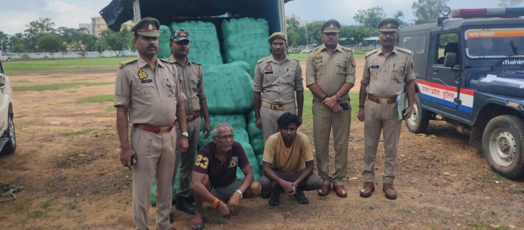सोनभद्र। पुलिस अधीक्षक डॉ यशवीर सिंह द्वारा जनपद में अवैध मादक पदार्थ तस्करों के विरुद्ध चलाए गए अभियान में अनवरत ताबडतोड कार्यवाही की कड़ी में मारक आसूचना संजाल से शनिवार की रात्रि को 9.50 बजे प्राप्त मुखबिरी सूचना पर त्वरित कार्यकवाही करते हुए उत्तर प्रदेश एस टी एफ व थाना चोपन पुलिस द्वारा सोन नदी पुल चोपन से 01 अदद ट्रक संख्या UP 63T 6318 में कोयले की राख लादकर उसके निचे छिपाकर ले जा रहे 10 बोरियों में कुल 364.4 किलोग्राम अवैध मादक पदार्थ गांजा (अनुमानित कीमत 72 लाख रुपये ) के साथ 02 अन्तर्जनपदीय गांजा तस्करों हसन अली पुत्र मो0 शकील निवासी सराय अजीज उर्फ अजीजपुर, थाना बहरिया, जनपद प्रयागराजउम्र करीब 25 वर्ष वाहन चालक तथा शिवप्रसाद मिश्रा पुत्र स्व0 श्याम बिहारी मिश्रा निवासी पुरे पाण्डेय पोस्ट छाता, थाना मऊ आईमा,जनपद प्रयागराज उम्र करीब 52 वर्ष को गिरफ्तार किया गया। इस गिरफ्तारी व बरामदगी के सम्बन्ध में थाना चोपन पर धारा 8/20/60 NDPS Aet का अभियोग पंजीकृत कर विधिक कार्यवाही की जा रही हैं ।