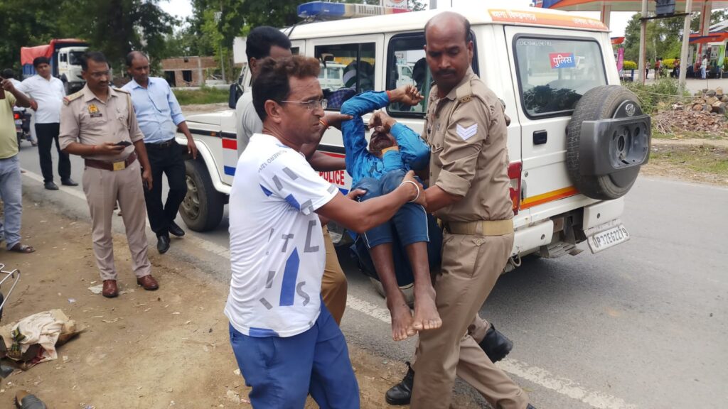 दुद्धी सोनभद्र। विंढमगंज थाना क्षेत्र के कोलिनडूबा गांव के रांची रीवा राष्ट्रीय राजमार्ग पर बुधवार को टीवीएस मोपेड पर सवार 50 वर्षीय अनंतकार पनीका पुत्र  बालगोविंद पनीका निवासी गांव अजानिया थाना कोन को कार ने जोरदार टक्कर मार दिया उसे गंभीर रूप से घायल हो गया। पटना की सूचना पर पहुंचे थाना प्रभारी निरीक्षक प्रमोद कुमार यादव ने घायल  व्यक्ति को प्राथमिक स्वास्थ्य केंद्र विढमगंज पर लाया जहाँ मौजूद चिकित्सक सत्येंद्र प्रसाद के द्वारा तत्काल इलाज चल रहा है। कोलिनडूबा ग्राम पंचायत में स्थित श्रीराम फीलिंग स्टेशन के पास हुई दुर्घटना स्थल पर मौजूद ग्रामीणों ने बताया कि घायल अनंतकार पनिका विढमगंज की ओर से दुध्दि की ओर टीवीएस मोपेड से हेलमेट लगाकर जा रहा था कि विपरीत दिशा से आ रही एक कार ने  मोपेड में जोरदार टक्कर मार दी। टक्कर इतनी जोरदार थी कि मोपेड बुरी तरह से क्षतिग्रस्त हो गया साथ ही टीवीएस मोपेड पर सवार अनंतकार कुमार दूर जा गिरा। संयोग अच्छा था कि मोपेड सवार हेलमेट लगाए हुए था नहीं तो बड़ी दुर्घटना हो सकती थी। तत्काल  स्थानीय थाने को सूचना किया गया। मौके पर पहुंचे थाना प्रभारी निरीक्षक प्रमोद कुमार यादव ने कहा कि घायल व्यक्ति को उठाकर प्राथमिक स्वास्थ्य केंद्र विढमगंज ले जाकर इलाज करवाया जा रहा हैं । परिजनों को सूचना दे दिया गया है।
