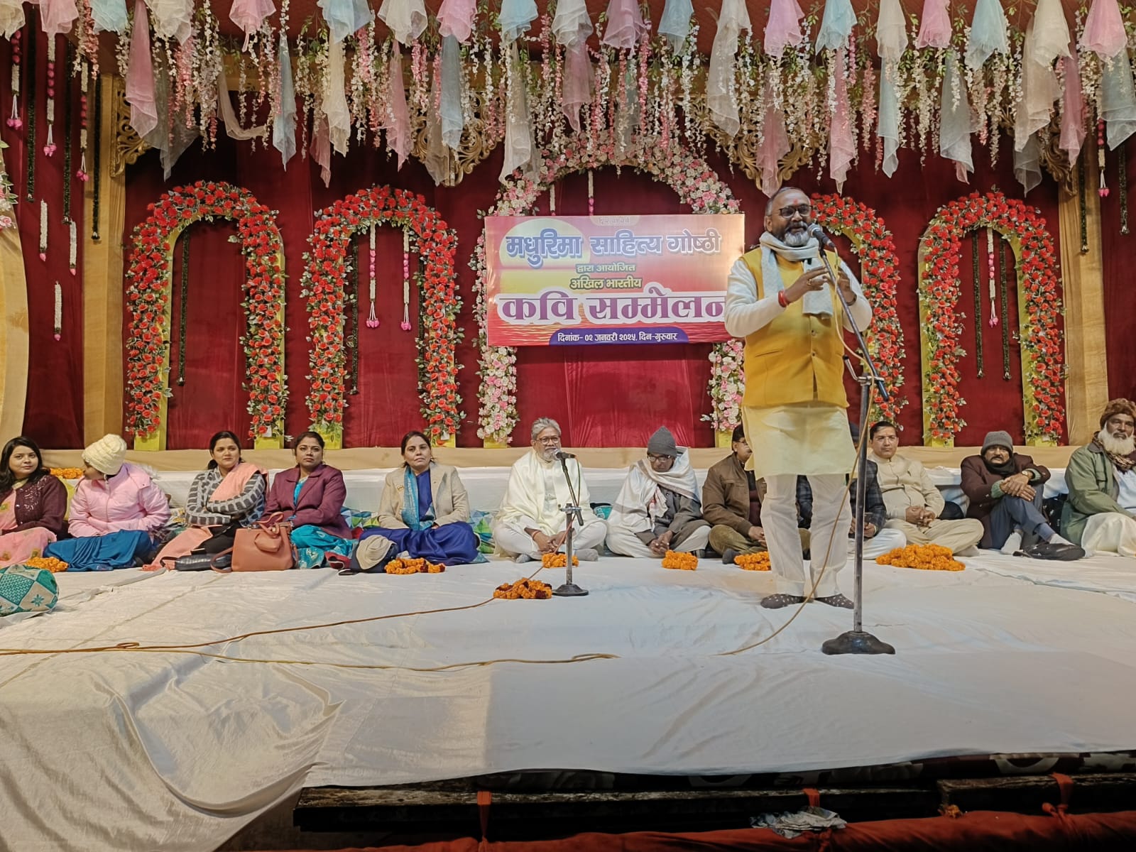 सोनभद्र(अरविंद दुबे,गिरीश तिवारी)-हिन्दी साहित्य के अनुपम अनुष्ठान हेतु देश के शीर्ष मंचों में शुमार मधुरिमा साहित्य गोष्ठी का 62 वां अखिल भारतीय कवि सम्मेलन अपने अतीत की सुनहरी यादों को समेटे वर्तमान के साथ चलते हुए भविष्य की इबारत लिखने के संकल्प के साथ आयोजन को यादगार बनाते हुए साहित्य प्रेमियों के दिलों में अपनी अमिट छाप छोड़ गया।