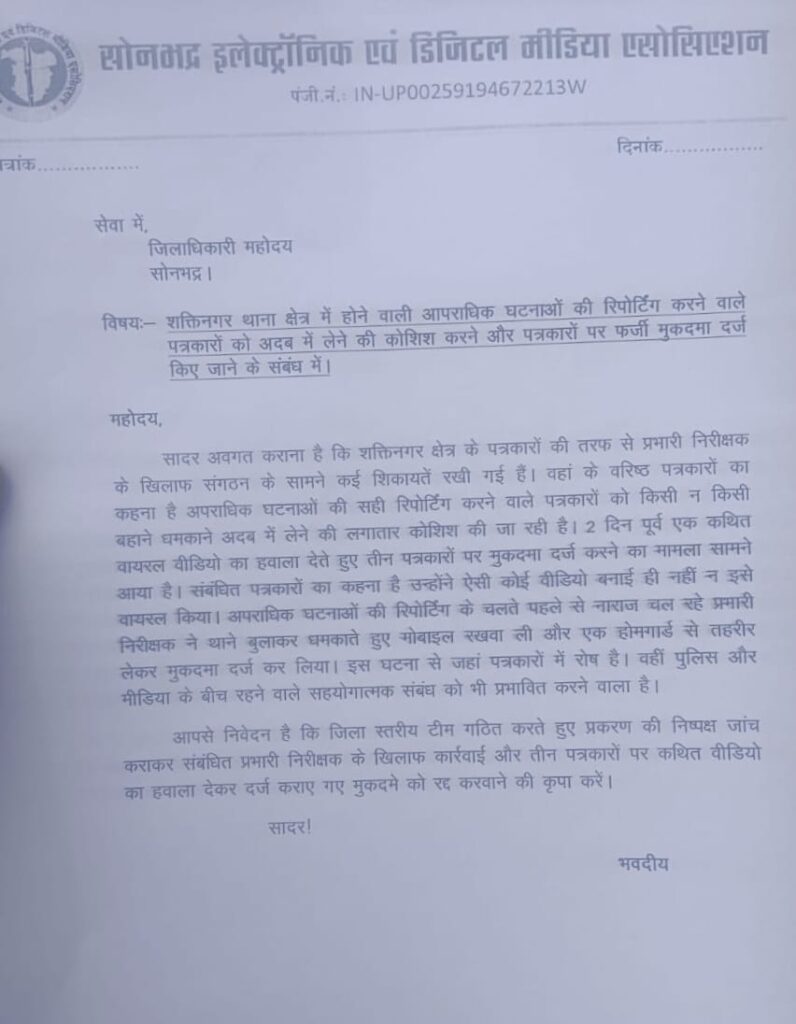 इस दौरान शक्तिनगर थाना क्षेत्र में होने वाली आपराधिक घटनाओं की रिपोर्टिंग करने वाले पत्रकारों को प्रभारी निरीक्षक की तरफ से अदब में लेने की कोशिश की मिल रही शिकायत और पत्रकारों पर कथित वायरल वीडियो को लेकर मुकदमा दर्ज किए जाने के मसले पर प्रमुखता से बात रखी गई। पीड़ित पत्रकारों ने भी एसपी के सामने अपना पक्ष रखा। एसपी ने प्रकरण की जांच कराने और इस दौरान सामने आने वाले तथ्यों के आधार पर त्वरित कार्रवाई का भरोसा दिया। साथ ही प्रकरण की जांच के लिए, एएसपी मुख्यालय को निर्देशित किया।