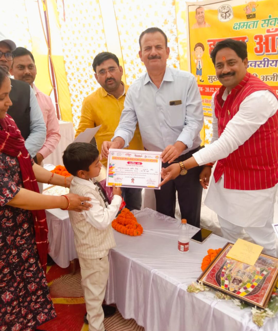 उन्होंने ने कहा कि राष्ट्रीय शिक्षा नीति के तहत परिषदीय स्कूलों में बेसिक शिक्षा विभाग और बाल विकास विभाग की ओर से नौनिहालों को शिक्षा ग्रहण कराई जाएगी कार्यक्रम में बाल वाटिका के बच्चों ने 17,18 एवं 21 का पहाड़ा एवं पीएम सुनाकर अपने अधिगम स्तर का परिचय दिया डी सी जय किशोर वर्मा के द्वारा विद्यालयों में उपस्थिति को बढ़ाने के लिए प्रेरित किया गया और आउट ऑफ स्कूल के बारे में उपस्थिति शिक्षकों को जानकारी साझा किया गया, ए आर पी हृदेश कुमार सिंह के द्वारा निपुण भारत मिशन अन्तर्गत संचालित समस्त गतिविधियों एवं रेडीनेस प्रोग्राम के बारे में शिक्षकों को जानकारी साझा किया गया एवं बाल वाटिका से कक्षा 2 तक के बच्चों हेतु निर्धारित अधिगम लक्ष्यों से जन समुदाय को अवगत कराया गया और बताया गया कि वर्ष 2025-26 तक प्रदेश को निपुण प्रदेश बनाने बनाना है , कोलोकेटेड आंगनवाड़ी केंद्रों में उपलब्ध कराई जा रही सामग्रियों यथा पुस्तके चहक,परिकलन,कलांकुर,एनबीटी कार्यपुस्तिका, बिगबुक,प्राइमर कार्ड्स, हॉलिस्टिक प्रोग्रेसकार्ड, कैलेंडर निर्देशिका,गतिविधि आधारित खिलौना, वंडर बॉक्स,स्टेशनरी,एवं लर्निंग कार्नर के बारे में भी संक्षिप्त जानकारी साझा किया गया इस मौके पर 60 निपुण बच्चे (बाल वाटिका और कक्षा एक एवं दो ) और 60 नोडल शिक्षकों को आदरणीय मुख्य अतिथि के द्वारा प्रशस्ति पत्र एवं स्टेशनरी देकर सम्मानित किया गया, मुख्य अतिथि द्वारा टी एल एम स्टॉल का भी अवलोकन कर शिक्षकों का उत्साहवर्धन किया गया I अंत में उपस्थित सभी को लंच पैकेट वितरित कर कार्यक्रम को समाप्त किया गया,इस अवसर पर वरुण त्रिपाठी, धर्मेंद्र उपाध्याय,कमलेश कुमार सिंह,बृजबाला,संदीप,अनामिका आंचल,रंजना,प्रतीक्षा,पूजा,सरिता जैसवार,अन्नू सहित समस्त शिक्षक अभिभावक एवं बच्चों की गरिमामई उपस्थिति रही I कार्यक्रम का संचालन ए आर पी हृदेश कुमार सिंह के द्वारा किया गया I
