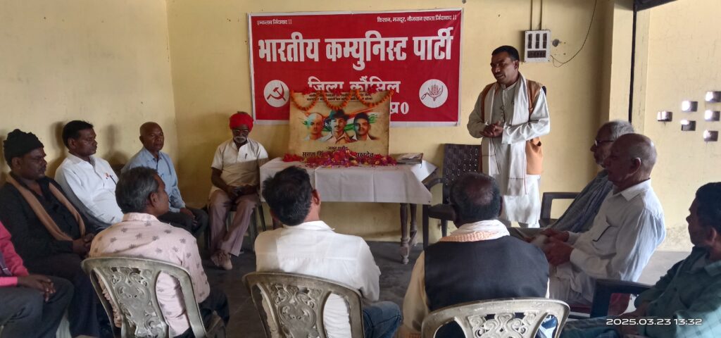 सोनभद्र(अरविंद दुबे,गिरीश तिवारी)-अमर शहीद भगत सिंह, राजगुरु और सुखदेव के शहादत दिवस पर भारतीय कम्युनिस्ट पार्टी के कार्यकर्ताओं ने जिला क्षेत्रीय कार्यालय पर इंकलाबी नारों के साथ शहीदों को नमन करते श्रद्धासुमन अर्पित किया ।