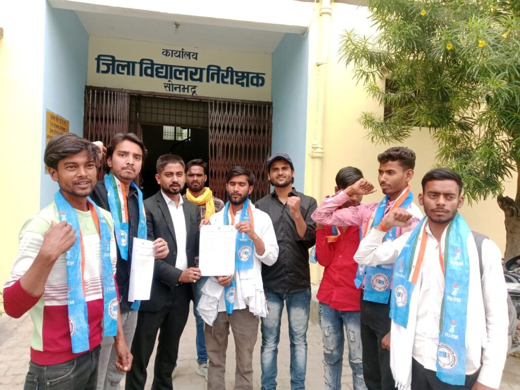 सोनभद्र। भारतीय राष्ट्रीय छात्र संगठन सोनभद्र के कार्यकर्ताओं द्वारा जिला अध्यक्ष अंशु गुप्ता के नेतृत्व में बढ़ती स्कूल फीस व मनमानी पुस्तक के दाम की बढ़ोतरी को लेकर जिला विद्यालय निरीक्षक के नाम से ज्ञापन दिया गया संबंधित ज्ञापन में जिला अध्यक्ष एनएसयूआई ने कहा कि देखा जाए तो हर साल ही जनपद में चल रहे विद्यालयों में, में फीस बढ़ती जा रही है आम जनमानस जहां एक और महंगाई से त्रस्त है वहां बच्चों की शिक्षा को लेकर भी कठिनाइयों का सामना करना पड़ रहा है जहां एक ओर एडमिशन के नाम पर पैसा लिया जाता है।