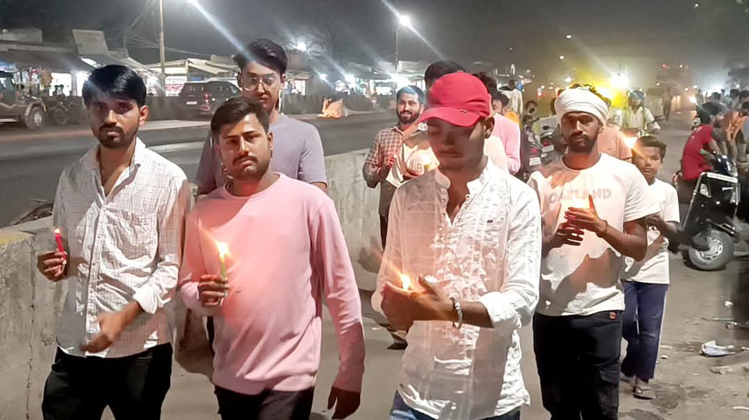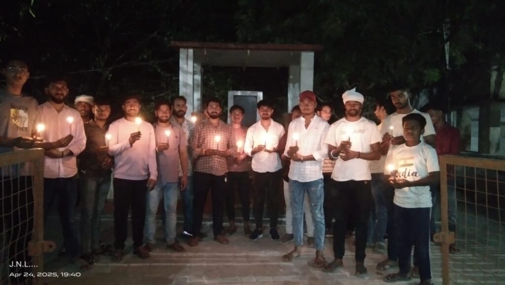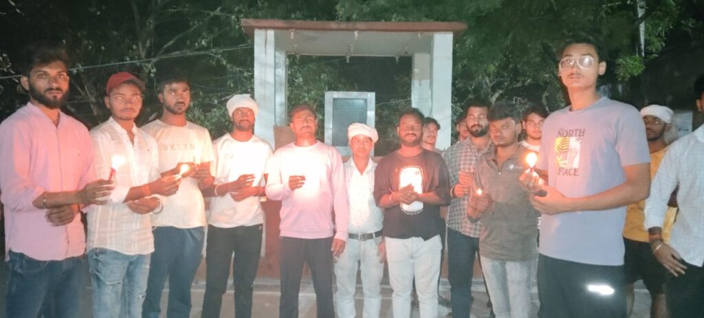 डाला/ सोनभद्र (अरविंद दुबे, गिरीश तिवारी)- नगर का शहीद स्थल गुरुवार देर शाम जज़्बे, जुनून और जनाक्रोश का गवाह बना। जम्मू-कश्मीर के पहलगाम में हुए कायराना आतंकी हमले में मारे गए बेगुनाह पर्यटकों को श्रद्धांजलि देने के लिए दर्जनों युवाओं ने यहां मोमबत्तियों की रोशनी में एक मौन पदयात्रा निकाली।