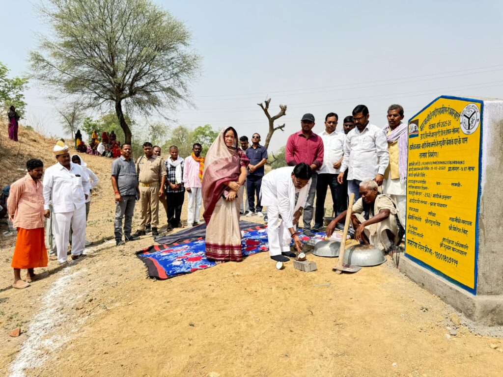 डाला/ सोनभद्र(अरविंद दुबे,गिरीश तिवारी)-विकासखंड चोपन के ग्राम पंचायत बिल्ली मारकुण्डी स्थित बाड़ी बैगा बस्ती में महात्मा गांधी राष्ट्रीय ग्रामीण रोजगार गारंटी योजना वर्ष 2025-26 के तहत तालाब निर्माण कार्य का शुभारंभ सोमवार को कर दिया गया यह तालाब रघुवीर बैगा के घर के पास बनाया जा रहा है, जिसकी अनुमानित लागत 9.97 लाख रुपए है।इस लोकहितकारी परियोजना का भूमि पूजन उत्तर प्रदेश सरकार के समाज कल्याण राज्य मंत्री श्री संजीव सिंह गौड़ एवं उनकी धर्मपत्नी व चोपन ब्लॉक प्रमुख श्रीमती लीला देवी गोंड ने वैदिक विधि-विधान के साथ सम्पन्न किया।