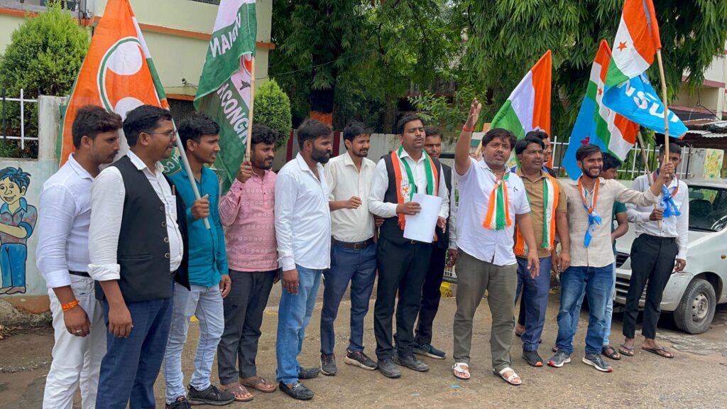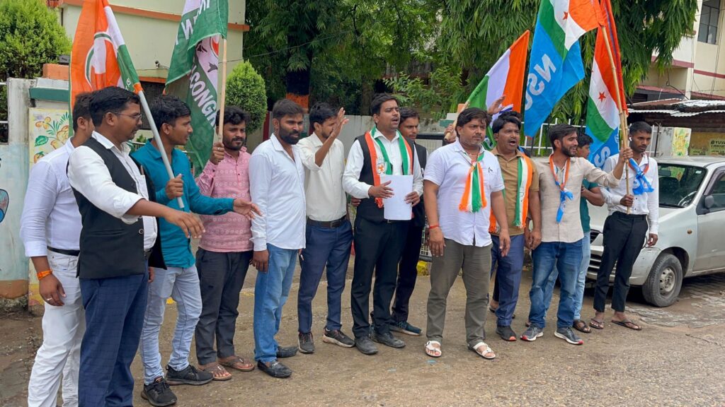 सोनभद्र। नगर पालिका राबर्ट्सगंज पर नगर में वयाप्त दुरव्यवस्थाओं को लेकर, नाली के बदबूदार पानी को लेकर, नगर में सफाई को लेकर आज युवा कांग्रेस ने प्रदर्शन किया व ज्ञापन दिया। कार्यक्रम में उपस्थित उत्तर प्रदेश कांग्रेस कमेटी के सदस्य आशुतोष कुमार दुबे (आशु) ने कहा कि राबर्ट्सगंज नगर में जहां कुछ दीनो से ही बारिश शुरू हुई है,जिसमे धर्मशाला, बढ़ोली चौराहा, अंबेडकर नगर, ब्रह्म नगर से लेते हुए नगर पालिका परिक्षेत्र में तमाम जगहों पर पानी सड़क पर गलियों में चलते हुए देखने को मिल जा रहा है , नालियों का पानी सड़कों पर हैं लोगों को उसमें से चलना उनकी मजबूरी हो जा रही है, वहीं दूसरी ओर नगर में बन रही नाली जो केवल जेसीबी से खोदते हुए नीचे की तलहटी को सही रूप से दिशा ना देते हुए बनाई जा रही है और टेढ़ी-मेढ़ी नालियां सार्वजनिक रूप से हर व्यक्ति देख सकता है, साथ नालिया कहीं सड़कों के ऊपर तो कहीं सड़कों के नीचे हैं।