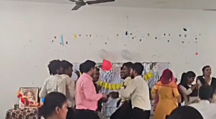 कार्यक्रम स्थल पर डीजे पर फूहड़ गानों की धुन बज रही है और इस माहौल में शिक्षक और छात्र-छात्राएं बेहिचक ठुमके लगा रहे हैं। लोगों का कहना है कि यह वीडियो दुद्धी तहसील के राम नगीना नर्सिंग होम का बताया जा रहा है। हालांकि, सोशल मीडिया पर वायरल हो रहे इस वीडियो की पुष्टि हम कहीं से भी नहीं करते।
