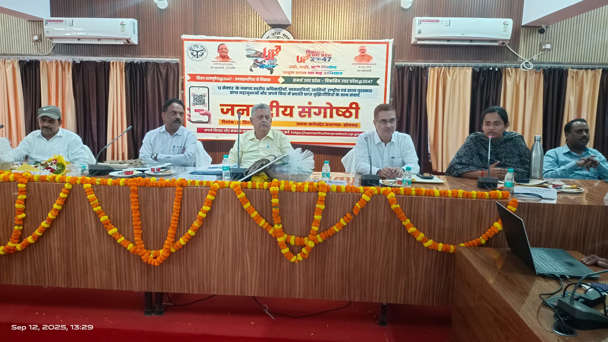 इसका उद्देश्य जनमानस में जागरूकता उत्पन्न करना तथा नागरिकों की आकांक्षाओं को संज्ञान में लेते हुये प्रदेश के नागरिकों को राज्य के विकास में सहयोगी व सहभागी बनाते हुये गर्व की भावना को विकसित करना है। उन्होंने विजय डॉक्यूमेंट 2047 हेतु जनभागीदारी से ही इसका निर्माण होगा। इसलिए उन्होंने जनपदवासियों से अपील किया कि दिये गये क्यूआर कोड या समर्थ उत्तर प्रदेश नामक पोर्टल पर प्रत्येक परिवार से कम से कम एक सुझाव दें। नामित प्रबुद्धजनों द्वारा जिलाधिकारी बीएन सिंह, पुलिस अधीक्षक अशोक कुमार मीणा व मुख्य विकास अधिकारी जागृति अवस्थी व जनपद स्तरीय अधिकारियों के साथ 12 सेक्टर के जनपद स्तरीय अधिकारियों, व्यवसावियों, उद्यमियों, राष्ट्रीय एवं राज्य पुरस्कार प्राप्त महानुभाओं और अपने विधा में ख्याति प्राप्त बुद्धिजीवियों के साथ जनपदीय संगोष्ठी में संवाद किया गया।