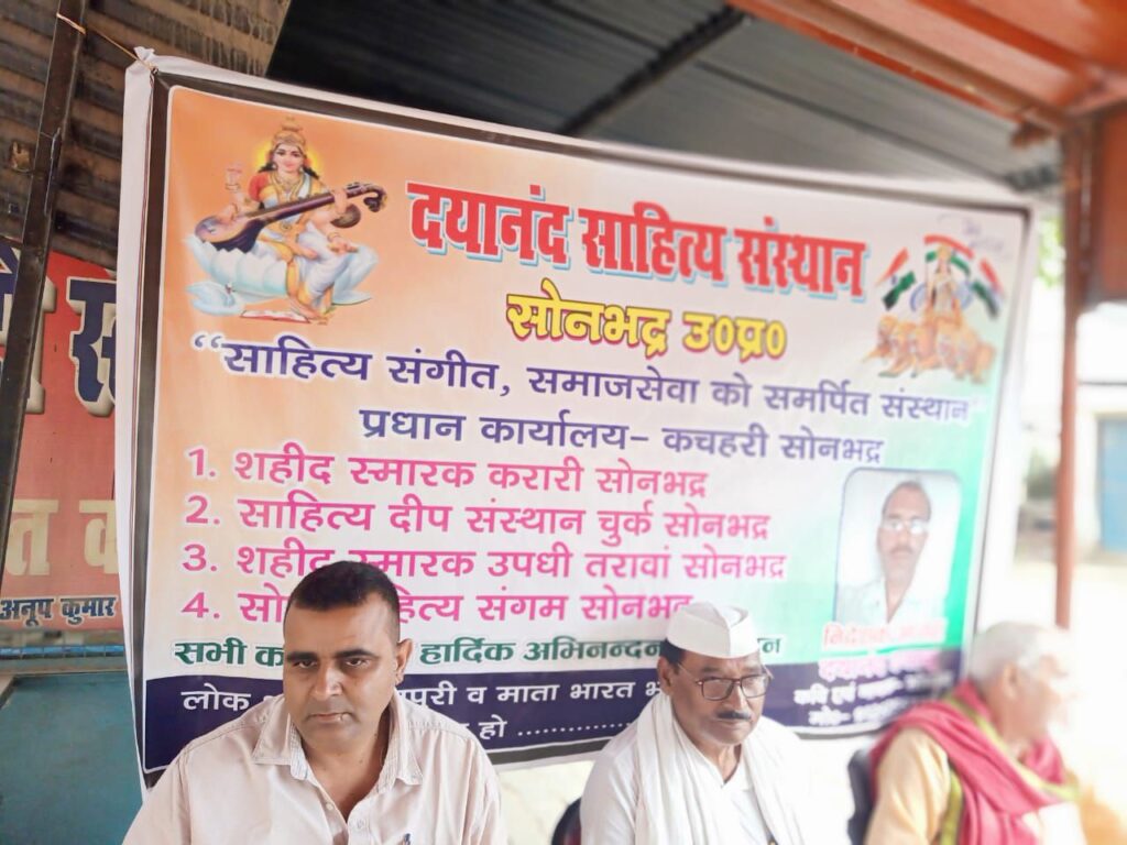 सोनभद्र। दयानंद साहित्य संस्थान के तत्वावधान में हिंदी दिवस के उपलक्ष्य में साहित्य गोष्ठी का आयोजन कचहरी में रविवार अपराह्न आयोजित किया गया। वाणी वंदना व वाग्देवी के चित्र पर माल्यार्पण दीपदान पश्चात ओज श्रृंगार की श्रेष्ठ कवयित्री कौशल्या कुमारी चौहान ने दिनकर भूषण चंद की धार, सरहद की निगहबान है हिंदी सुनाकर समसामयिक रचना से सबका मन मोह लिया। कवयित्री दिव्या राय ने हिंदी की दुर्दशा पर नवगीत, घुट घुट कर मैं जी रही हूँ, खून के आंसू पी रही हूँ सुनाकर पीर उकेरा सराही गयीं। कार्य क्रम की अध्यक्षता करते हुए ओज के कवि प्रभात सिंह चंदेल ने,जय जगत जननी जनम भू वीर मातु वसुंधरा सुनाकर आयोजन को मुखरित किया। हास्य कवि सुनिल चौचक ने,बासी भात पर बेना जिनि हौंका, बनल बाप के बिगरल बेटवा एतना मति फौंका सुनाकर खूब हंसाते रहे।