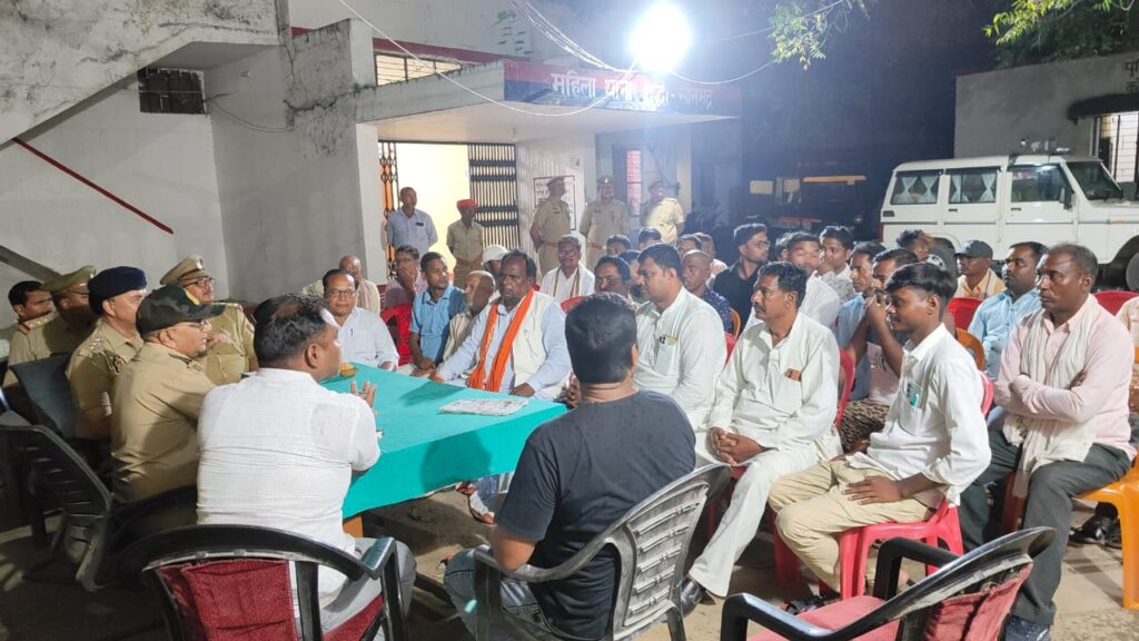 दुद्धी/सोनभद्र( रवि सिंह)- दुर्गा पूजा व दशहरा पर्व के मद्देनजर सोमवार को पुरानी कोतवाली में शाम 6:00 बजे शांति समिति की बैठक एएसपी त्रिभुवन नाथ त्रिपाठी की अध्यक्षता में सम्पन्न हुई। बैठक में दुर्गा पूजा व दशहरा पर्व को शांतिपूर्ण तरिके से मनाने पर चर्चा की गयी। एएसपी ने नगर समेत दूर-दराज के गांवों से आये रामलीला कमेटी एवं दुर्गा पूजा कमेटी के पदाधिकारियों से त्यौहार मनाने की रुपरेखा आदि पर विस्तार से चर्चा की।त्यौहार मनाने में आने वाली समस्याओं की जानकारी लेते हुए,मातहत अधिकारियों को उसके त्वरित निदान के निर्देश दीये।इसके अलावा उन्होंने कमेटी के पदाधिकारियों से पूजा पंडाल एवं रामलीला स्थल पर सुरक्षा की सारी व्यवस्था बनाने की अपील की। आगे कहा कि जुलूस में मूर्तियों की झांकी एवं डीजे की ऊंचाई 8 फीट से ज्यादा नहीं रखी जाये।