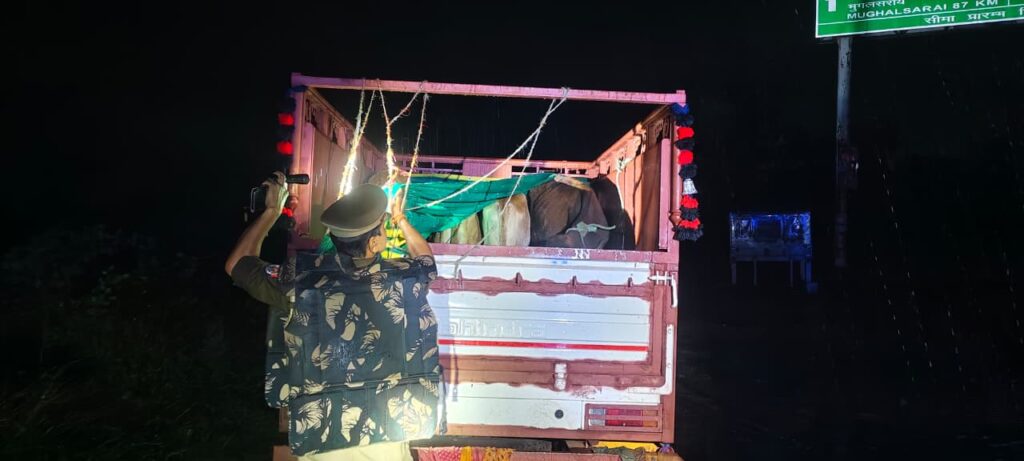 सोनभद्र(AKD/गिरीश तिवारी)- पुलिस अधीक्षक अभिषेक वर्मा के निर्देशन तथा अपर पुलिस अधीक्षक मुख्यालय अनिल कुमार और क्षेत्राधिकारी नगर रणधीर कुमार मिश्रा के पर्यवेक्षण में चलाए जा रहे गो-तस्करी विरोधी अभियानों के तहत शुक्रवार को सुबह थाना रॉबर्ट्सगंज पुलिस व एसओजी टीम को मुखबिर सूचना मिली कि घोरावल से नौगढ़ होते हुए कुछ पशु तस्कर बिहार ले जाने के उद्देश्य से पिकअप में गोवंश ले जा रहे हैं,