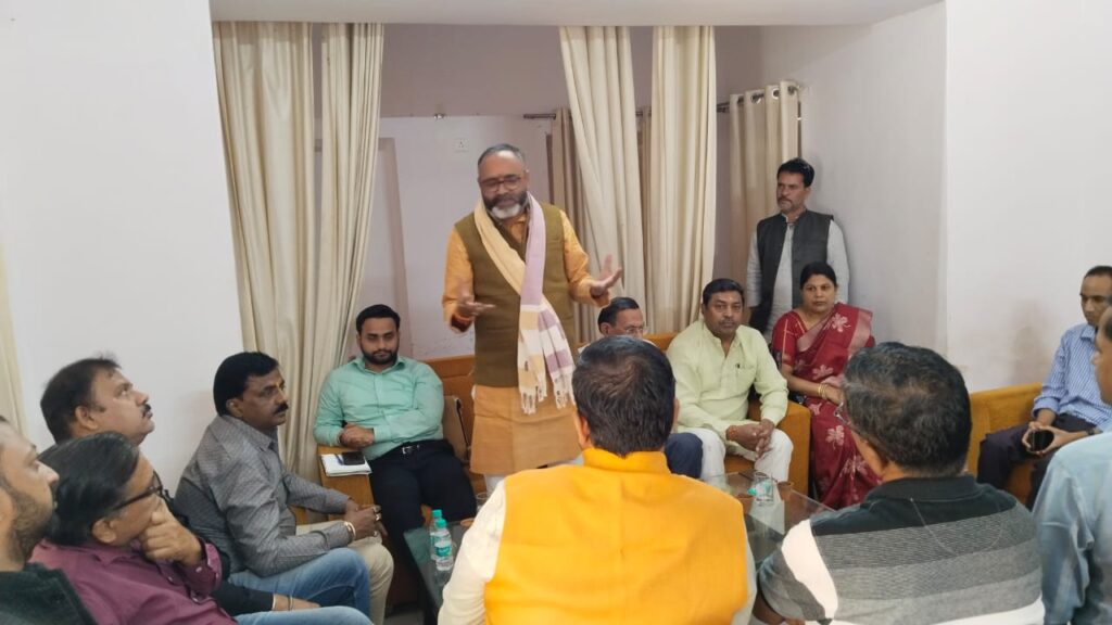 सोनभद्र(AKD/गिरीश तिवारी)- सदर विधायक भूपेश चौबे ने सोमवार को पीडब्ल्यूडी गेस्ट हाउस में बिजली विभाग के अधिकारियों के साथ व्यापारियों की समस्याओं को लेकर एक अहम बैठक की। बैठक में विधायक का स्वर स्पष्ट और कठोर था — उन्होंने दो टूक कहा कि व्यापारियों के साथ किसी भी प्रकार का अनुचित व्यवहार अब बर्दाश्त नहीं किया जाएगा। यदि कोई अधिकारी या कर्मचारी लापरवाही बरतेगा तो उसे बख्शा नहीं जाएगा।