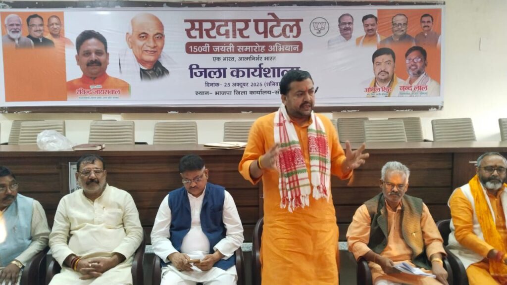 बैठक को संबोधित करते हुए सदर विधायक भूपेश चौबे व नागेश्वर देव पाण्डेय ने कहा कि राष्ट्रीय आधार के स्तंम्भ सरदार पटेल जी 150वीं जयन्ती के अवसर पर आयोजित विधानसभा पदयात्रा का कार्यक्रम होना है। जिसमें हम सभी कार्यकर्ता आज से ही उसके लिए लगे जिससे कि यह पदयात्रा ऐतिहासिक हो सके आगे कहा कि लौहपुरुष सरदार बल्लभ भाई पटेल ने अपने अदम्य साहस अपने दृढ़ इच्छाशक्ति और दूरदर्शी नेतृत्व से भारत के विभाजित रियासतोे को एक सूत्र मे बांधकर अखण्ड भारत का निर्माण किया उनकी निष्ठा समर्पण और देशभक्ति का भाव हर भारतीय के हृदय मे आज भी जीवित है। बैठक मे मुख्यरुप से जिला महामंत्री कृष्णमुरारी गुप्ता, संतोष शुक्ला, शंम्भू नारायण, मनोज सोनकर, प्रसन्न पटेल, अनूप तिवारी, मण्डल अध्यक्ष योगेन्द्र बिन्द, दिलिप चौबे, रामलाल चेरो, संदीप पटेल सहित सभी विधानसभा पदयात्रा कार्यक्रम के संयोजक, सह संयोजक, मण्डल अध्यक्ष व मण्डल प्रभारी, पूर्व मण्डल अध्यक्ष सहित आदि कार्यकर्ता मौजूद रहे।