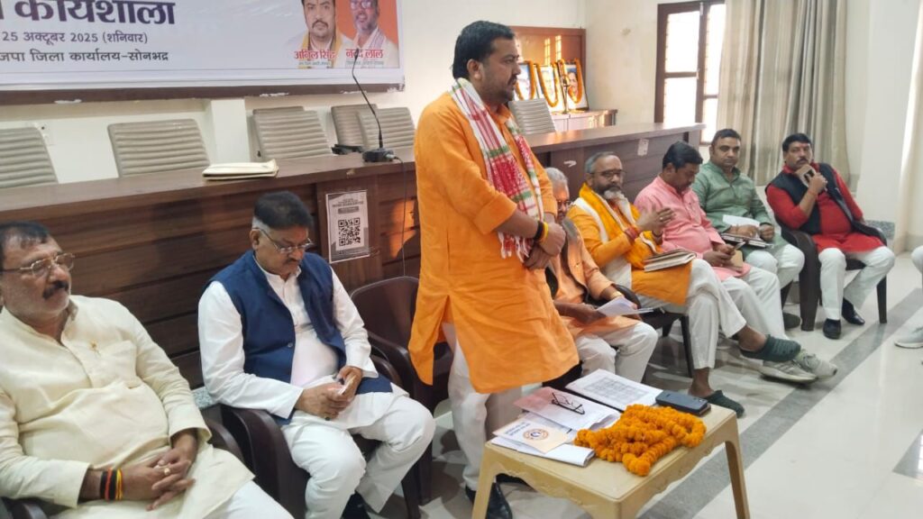 सोनभद्र। एक भारत श्रेष्ठ भारत के शिल्पकार सरदार बल्लभ भाई पटेल की 150वीं जयन्ती के उपलक्ष्य मे आयोजित 19 नवंबर को राबर्ट्सगंज विधानसभा यात्रा कि तैयारी हेतु विधानसभा राबर्ट्सगंज की बैठक जिला कार्यालय पर सम्पन्न हुई। बैठक मे बतौर मुख्यअतिथि के रुप मे जिला प्रभारी अनिल सिंह मौजूद रहे। बैठक का शुभारंम्भ पं0 दीनदयाल उपाध्याय व डॉ0 श्यामा प्रसाद मुखर्जी और सरदार बल्लभ भाई पटेल जी के चित्र पर मुख्यअतिथि अनिल सिंह, लोकसभा यात्रा संयोजक नागेश्वर देव पाण्डेय, विधानसभा प्रभारी रमेश मिश्रा, ओंकार केशरी, सदर विधायक भूपेश चौबे ने दीप प्रज्जवलित व पुष्प अर्पित कर किया। बैठक मे आगामी होने वाली विधानसभा पदयात्रा कि विस्तृत चर्चा कर आगे कि रणनीति तय कि गयी। बैठक का संचालन जिला उपाध्यक्ष अशोक मौर्या ने किया।
