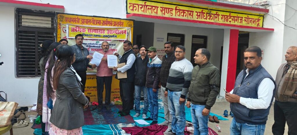 सोनभद्र। प्रदेश नेतृत्व के आवाहन पर जिले के सभी विकास खण्डों में आज ग्राम पंचायत अधिकारियों का क्रमिक सत्याग्रह आंदोलन शुरू हो गया। यह सत्याग्रह जिलाध्यक्ष मनोज दुबे कि अध्यक्षता में शुरू हुआ। आपको बता दें कि उत्तर प्रदेश के समस्त विकास खण्डों में ग्राम पंचायत अधिकारी एवं ग्राम विकास अधिकारी क्रमिक शांतिपूर्ण सत्याग्रह आंदोलन पर बैठ गए हैं। सूत्रों कि माने तो यह आंदोलन विभिन्न लंबित मांगों और कार्यभार संबंधी समस्याओं को लेकर किया जा रहा है, जिसके लिए संघ ने विस्तृत निर्देश जारी किए हैं। जिसमे सबसे पहले सभी ग्राम पंचायत सचिवों को “10 सूत्रीय अनुरोध ज्ञापन” की दो प्रतियां सादे कागज पर तैयार करनी हैं। आंदोलन कर रहे लोगों ने ने बताया कि यह ज्ञापन मुख्यमंत्री, उत्तर प्रदेश सरकार तथा मुख्य सचिव, उत्तर प्रदेश शासन को संबोधित होगा। सभी सचिव अपने नाम व पदनाम के साथ ज्ञापन पर हस्ताक्षर करेंगे और उसके बाद दोनों प्रतियों का PDF तैयार करेंगे। ज्ञापन तैयार होने के बाद संबंधित खण्ड विकास अधिकारी को यह ज्ञापन सौंपा गया। इसके साथ ही PDF को निर्धारित मेल आईडी पर भी भेजा गया।