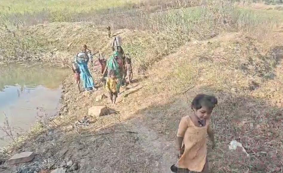 तालाब का दूषित पानी पीने को मजबूर ग्रामीण