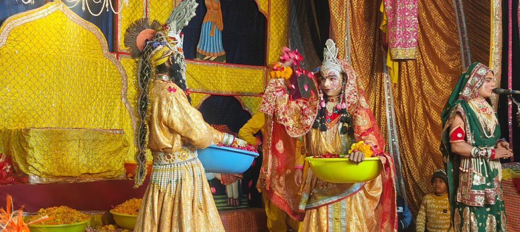 कंश वध लीला के बाद ब्रज की पारंपरिक फूलों की होली का मनमोहक प्रदर्शन हुआ, जो राधा-कृष्ण की दिव्य प्रेम लीला और वसंतोत्सव का प्रतीक है। गोपियों ने फूलों की रंगीन वर्षा कर भगवान कृष्ण को प्रसन्न किया, जिससे परिसर फूलों की सुगंध और भक्ति के रंगों से महक उठा।