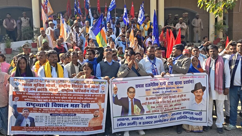 प्लाटरों द्वारा अपने प्लाट तक सीधा रास्ता बनाने के लिए अंबेडकर पार्क की भूमि से अवैध सड़क निर्माण का प्रयास किया जा रहा है। पूर्व में मिट्टी डालकर सड़क बनाने का प्रयास ग्रामीणों के विरोध के बाद रुक गया था, लेकिन अब सदर तहसीलदार श्री अमित सिंह की मिलीभगत से पुनः अवैध सड़क निर्माण कराया जा रहा है।आरोप है कि विरोध करने पर सदर तहसीलदार द्वारा ग्रामीणों और राजनीतिक दलों को धमकाया जा रहा है, जिससे गांव में तनाव का माहौल बन गया है। इस मामले को लेकर 14 जनवरी 2026 को जिलाधिकारी को लिखित पत्र दिया गया था, लेकिन अब तक कोई कार्रवाई नहीं होने से प्लाटरों के हौसले बुलंद हैं और गांव में अशांति फैलने की आशंका बढ़ गई है।प्रदर्शनकारियों ने मांग की कि अंबेडकर पार्क की भूमि का घेराव कर उसे संरक्षित और सौंदर्यीकृत किया जाए, सदर तहसीलदार एवं संबंधित प्लाटरों के खिलाफ जांच कर कड़ी कानूनी कार्रवाई की जाए और जनपद सोनभद्र में सभी अंबेडकर पार्क, महापुरुषों के स्थलों व प्रतिमाओं को पूरी तरह सुरक्षित किया जाए। नेताओं ने स्पष्ट चेतावनी दी कि यदि समय रहते जिला प्रशासन द्वारा कार्रवाई नहीं की गई तो सभी दल मिलकर बड़े पैमाने पर सड़क पर उतरकर आंदोलन करेंगे, जिसकी पूरी जिम्मेदारी शासन-प्रशासन की होगी।प्रदर्शन में भाकपा जिला सचिव कामरेड आर.के. शर्मा, माकपा जिला सचिव कामरेड नंदलाल आर्य, माले नेता कामरेड नोहर भारती, आज़ाद समाज पार्टी के रवि शंकर (एडवोकेट), राष्ट्रीय पिछड़ा मोर्चा के लक्ष्मी नारायण बौद्ध, गोंगपा के जय मंगल उरेती सहित सैकड़ों कार्यकर्ता मौजूद रहे। कार्यक्रम की अध्यक्षता कम्युनिस्ट पार्टी के वरिष्ठ नेता कामरेड प्रेम नाथ ने की, जबकि संचालन आज़ाद समाज पार्टी के जिलाध्यक्ष रवि कांत ने किया।
