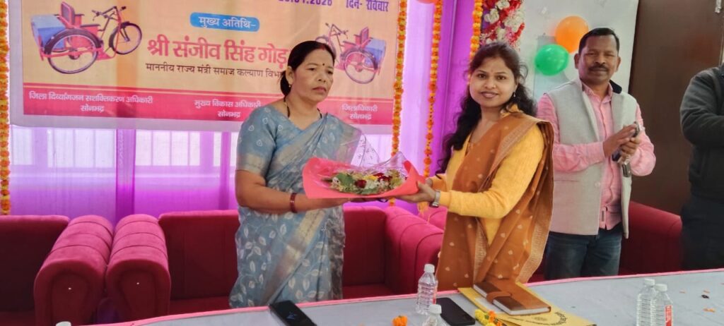 राष्ट्रीय मतदाता दिवस के अवसर पर कलेक्ट्रेट परिसर में जिलाधिकारी बी.एन. सिंह की अध्यक्षता में दिव्यांगजनों के लिए सहायता वितरण कार्यक्रम आयोजित किया गया। इस दौरान दिव्यांगजन सशक्तीकरण विभाग द्वारा 10 दिव्यांगजनों को निःशुल्क मोटराइज्ड ट्राइसाइकिल प्रदान की गई। कार्यक्रम में चोपन निवासी श्रीमती हीरामणी को जिलाधिकारी के कर-कमलों से मोटराइज्ड ट्राइसाइकिल एवं कंबल दिया गया। निःशुल्क ट्राइसाइकिल प्राप्त होने पर उनके पति श्री बंधु की आंखों में खुशी के आंसू छलक पड़े। उन्होंने शासन-प्रशासन का बार-बार धन्यवाद देते हुए कहा कि मुख्यमंत्री योगी आदित्यनाथ द्वारा दिव्यांगजनों के लिए चलाई जा रही यह योजना अत्यंत सराहनीय है। इस योजना से दिव्यांगजन आवागमन के साथ-साथ छोटा रोजगार कर आत्मनिर्भर बन सकते हैं।