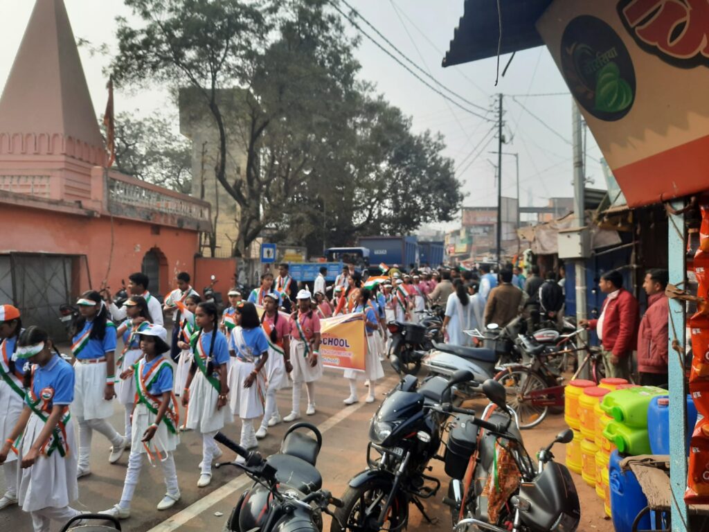 77 वें गणतंत्र दिवस पर सुबह साढ़े आठ बजे कस्बे के विभिन्न विद्यालयों से नन्हे-मुन्ने बच्चों ने आकर्षक झांकियों के साथ प्रभात फेरी निकाली। भारत माता, महात्मा गांधी, सुभाष चंद्र बोस, भगत सिंह, लाल बहादुर शास्त्री व पंडित जवाहर लाल नेहरू की झांकियां प्रमुख रहीं। बच्चों ने महापुरुषों के नाम का उद्घोष करते हुए देशभक्ति का जोरदार प्रदर्शन किया।