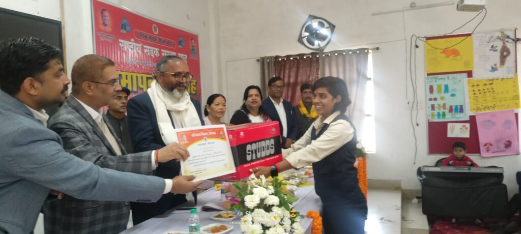 सोनभद्र। जनपद में सड़क सुरक्षा के प्रति जन-जागरूकता बढ़ाने हेतु 1 जनवरी से 31 जनवरी 2026 तक आयोजित सड़क सुरक्षा माह का समापन कार्यक्रम डायट परिसर में भक्ति एवं अनुशासित वातावरण में संपन्न हुआ। कार्यक्रम का शुभारंभ सड़क सुरक्षा से संबंधित संदेशों एवं प्रेरक प्रस्तुतियों के साथ किया गया, जिसमें छात्र-छात्राओं ने बढ़-चढ़कर सहभागिता निभाई। इस अवसर पर सड़क सुरक्षा माह के अंतर्गत विभिन्न प्रतियोगिताओं जैसे निबंध, चित्रकला, पोस्टर, भाषण आदि में उत्कृष्ट प्रदर्शन करने वाले छात्र-छात्राओं को प्रशस्ति पत्र एवं पुरस्कार देकर सम्मानित किया गया। अतिथियों ने विद्यार्थियों के प्रयासों की सराहना करते हुए उन्हें सड़क सुरक्षा के संदेश का संवाहक बनने के लिए प्रेरित किया।