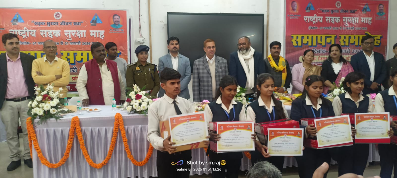 समापन कार्यक्रम में विधायक सदर भूपेश चौबे, जिलाधिकारी बी.एन. सिंह, सहित अन्य वरिष्ठ अधिकारीगण, कर्मचारीगण एवं शिक्षाविद उपस्थित रहे। अतिथियों ने अपने संबोधन में कहा कि सड़क सुरक्षा केवल एक अभियान नहीं, बल्कि निरंतर अपनाई जाने वाली जीवनशैली है। नियमों का पालन कर ही दुर्घटनाओं में कमी लाई जा सकती है। सड़क सुरक्षा माह के दौरान पूरे जनपद में विशेष अभियान चलाकर हेलमेट, सीट बेल्ट, यातायात नियमों के पालन तथा सुरक्षित ड्राइविंग के प्रति लोगों को जागरूक किया गया। कार्यक्रम के सफल आयोजन के साथ सड़क सुरक्षा का संदेश जन-जन तक पहुंचाने का संकल्प दोहराया गया।