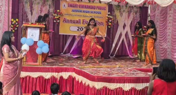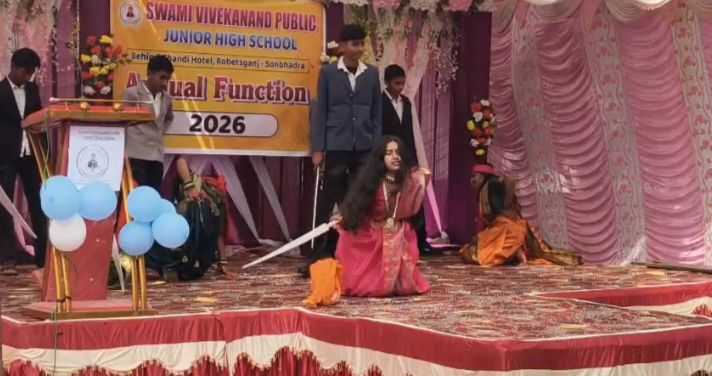 सोनभद्र। राबर्ट्सगंज नगर स्थित स्वामी विवेकानंद जूनियर हाई स्कूल का 25वां वार्षिक उत्सव बड़े ही हर्षोल्लास, गरिमा और धूमधाम के साथ मनाया गया। रजत जयंती के इस विशेष अवसर पर विद्यालय परिसर उत्सवमय माहौल में तब्दील नजर आया। कार्यक्रम की शुरुआत मां सरस्वती के चित्र पर माल्यार्पण एवं दीप प्रज्वलन के साथ हुई, जिसके बाद विधिवत रूप से सांस्कृतिक कार्यक्रमों का सिलसिला शुरू हुआ। वार्षिक उत्सव में विद्यालय के छात्र-छात्राओं ने देशभक्ति, सामाजिक समरसता, नैतिक मूल्यों और सांस्कृतिक विरासत पर आधारित मनमोहक प्रस्तुतियां देकर उपस्थित जनसमूह का दिल जीत लिया। नृत्य, गीत, नाट्य मंचन और समूह प्रस्तुतियों में बच्चों का आत्मविश्वास, अनुशासन और कला कौशल साफ झलक रहा था। अभिभावकों और अतिथियों ने बच्चों की प्रतिभा की खुलकर सराहना की और तालियों की गड़गड़ाहट से उनका उत्साह बढ़ाया।