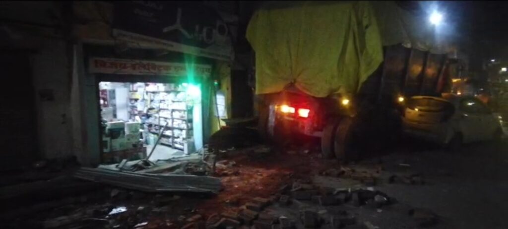 पीड़ित दुकानदार नीरज सोनी ने बताया कि अचानक ट्रेलर मकान की ओर मुड़ गया और खड़ी गाड़ियों को रौंदता हुआ दीवार से जा टकराया, जिससे भारी नुकसान हुआ है।सूचना मिलने पर पुलिस मौके पर पहुंची और नुकसान का जायजा लिया। सीसीटीवी फुटेज के आधार पर फरार चालक की तलाश की जा रही है।