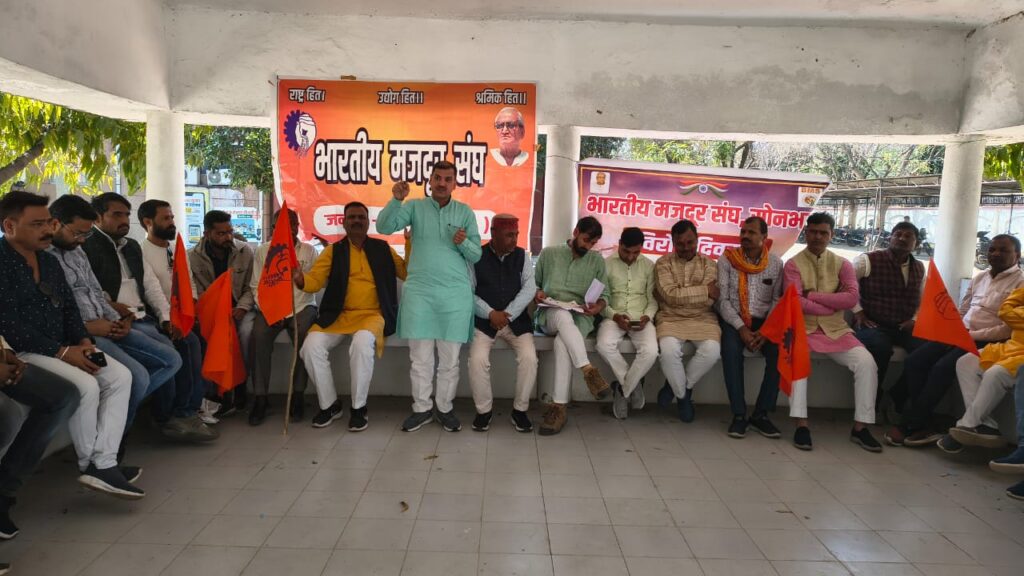 सोनभद्र(AKD/गिरीश तिवारी)-लेबर कोड से जुड़े मुद्दों पर भारतीय मजदूर संघ ने बुधवार को जिला अधिकारी कार्यालय, सोनभद्र में सभा आयोजित कर ज्ञापन सौंपा। कार्यक्रम में संगठन के पदाधिकारी और कार्यकर्ता बड़ी संख्या में शामिल हुए। सभा की अध्यक्षता दसाराम यादव ने की।इस अवसर पर काशी प्रांत के प्रदेश मंत्री अरुण कुमार दुबे और जिला मंत्री एल.पी. शुक्ल मुख्य रूप से उपस्थित रहे। विभिन्न प्रतिष्ठानों, परियोजनाओं, ग्रामीण क्षेत्रों तथा आशा कार्यकर्ताओं की सक्रिय भागीदारी रही।