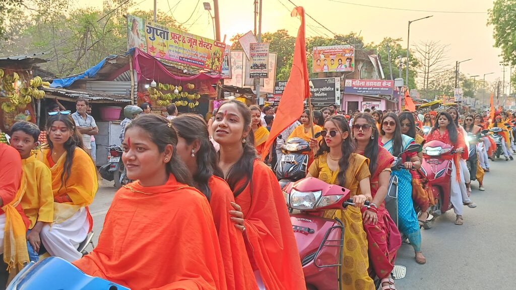 दुद्धी, सोनभद्र। स्थानीय कस्बे में रामनवमी के अवसर पर विश्व हिन्दू परिषद की दुर्गावाहिनी बालिकाओं द्वारा स्कूटी जुलूस और युवाशक्ति द्वारा बाइक जुलूस निकाला गया।